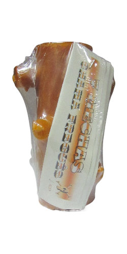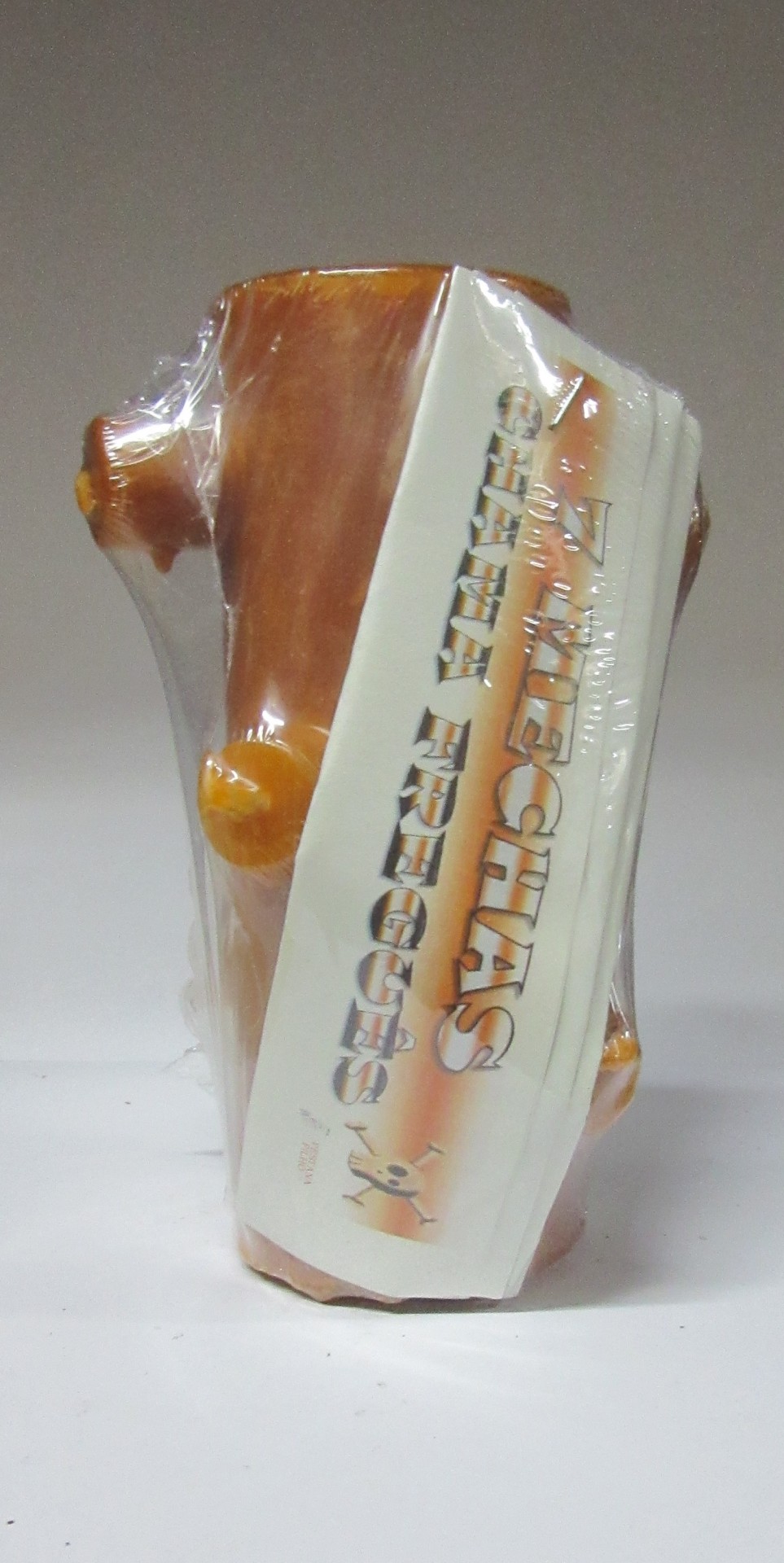 Vaso castanho decorativo embalado com etiqueta 'SECRET'S MEXICAN PECHOS'