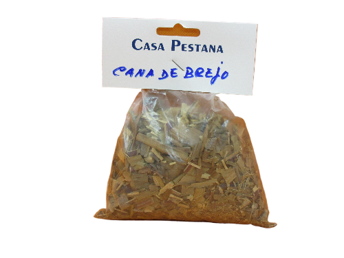 Pacote de palha ou lascas de madeira secas com etiqueta CASA PESTANA CANA DE BREJO