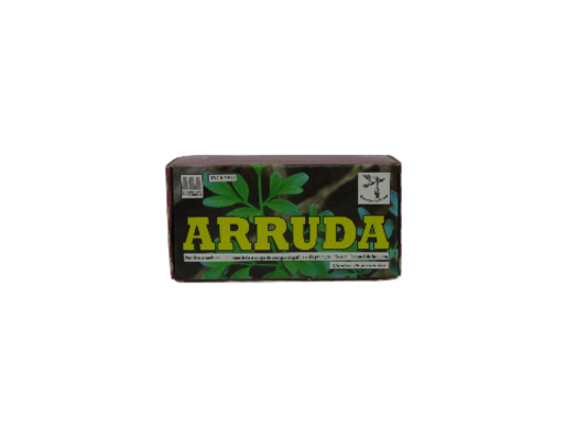 Barra de sabão ARRUDA com embalagem verde e amarela e imagem de folhas