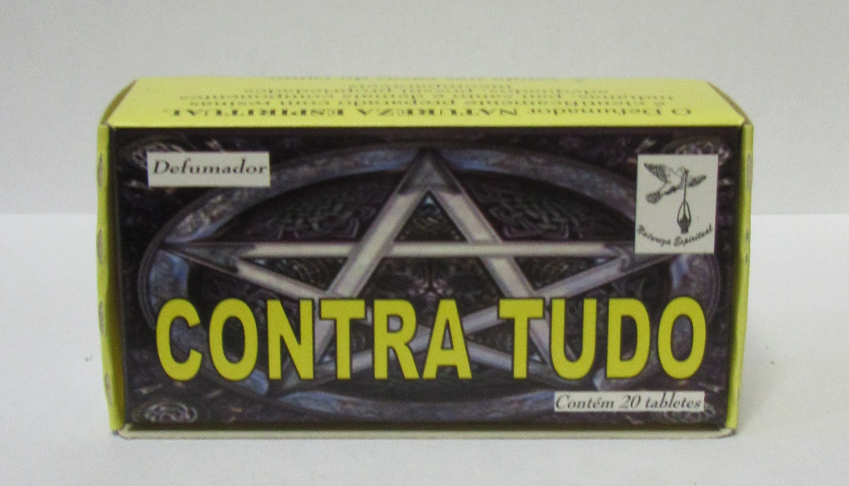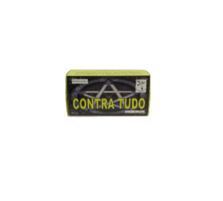 caixa amarela do produto Contra Tudo com estrela pentagonal e texto Defumador