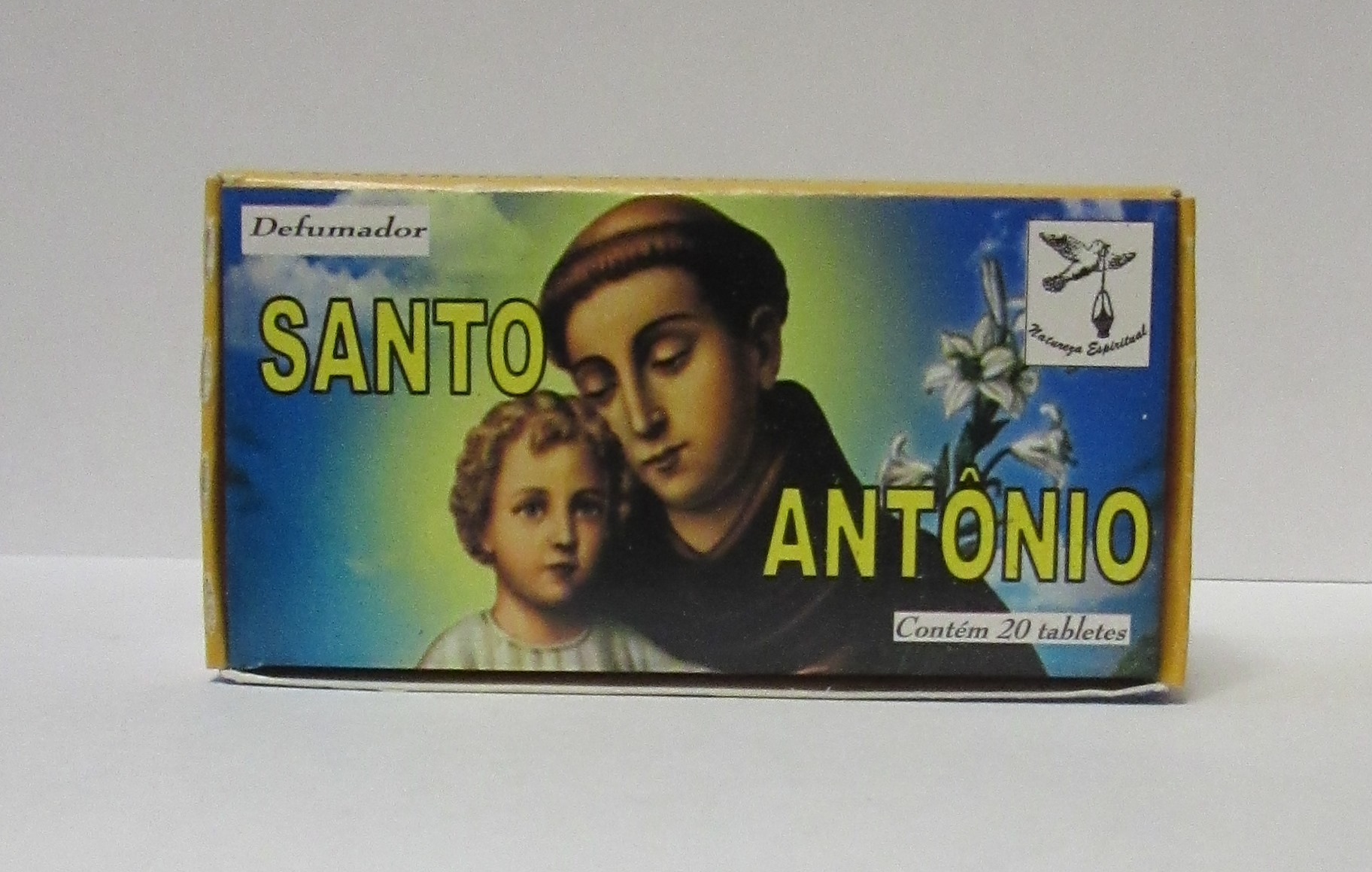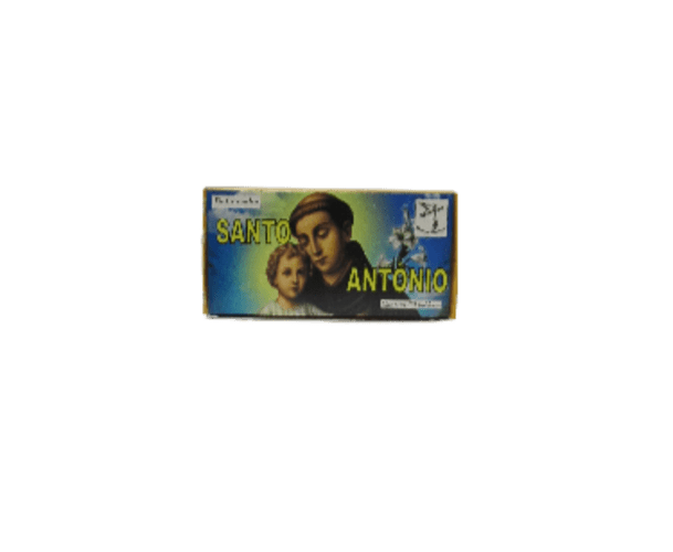 Embalagem com imagem de Santo António e texto SANTO ANTONIO