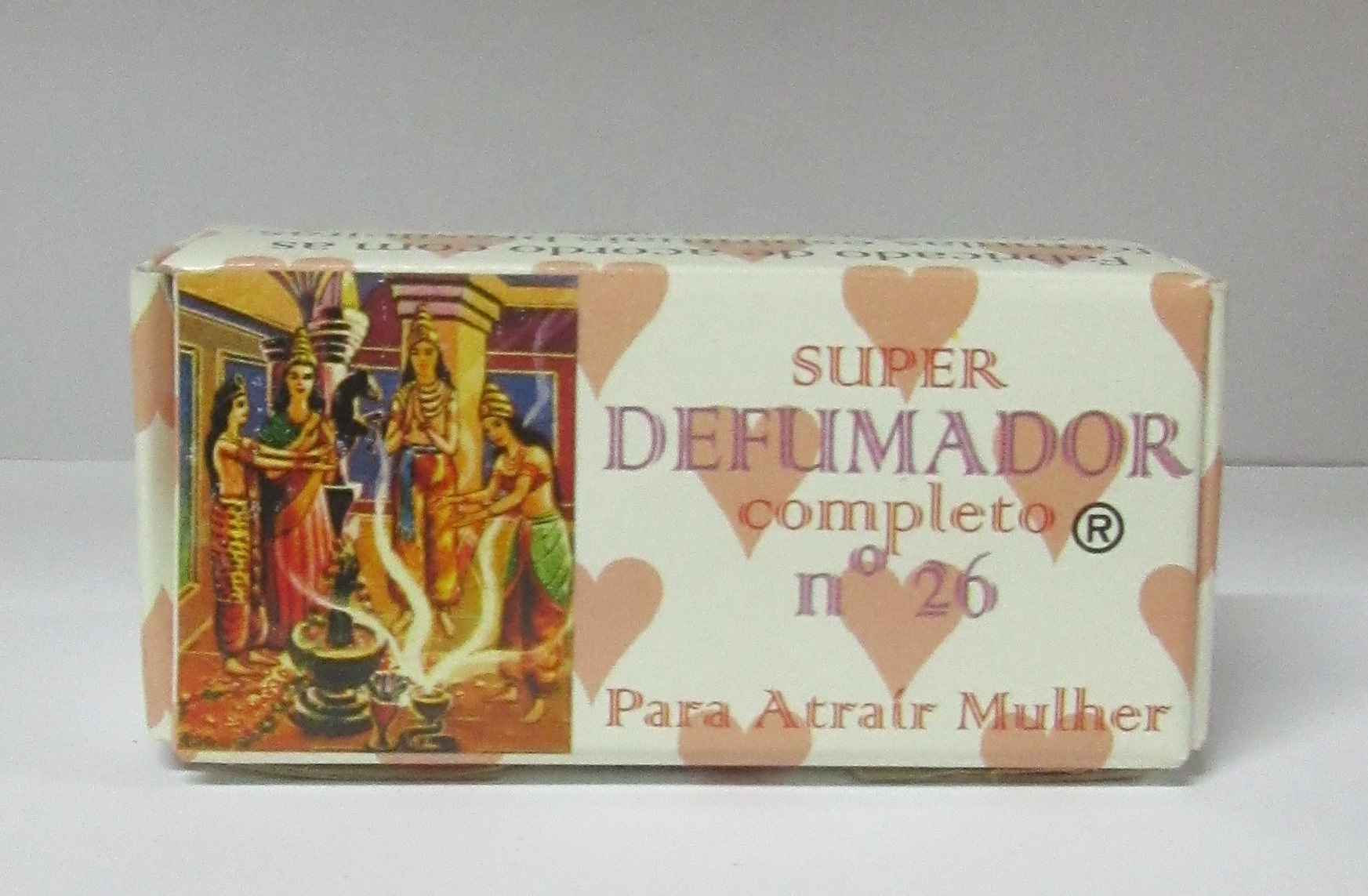 Caixa de SUPER DEFUMADOR completo nº 26 Para Atrair Mulher com arte colorida e corações laranja