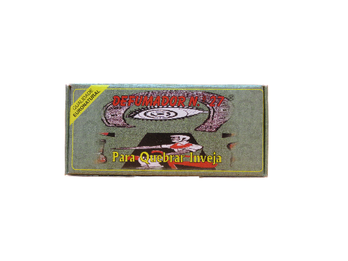 Embalagem verde do produto DEFUMADOR N° 27 para quebrar inveja