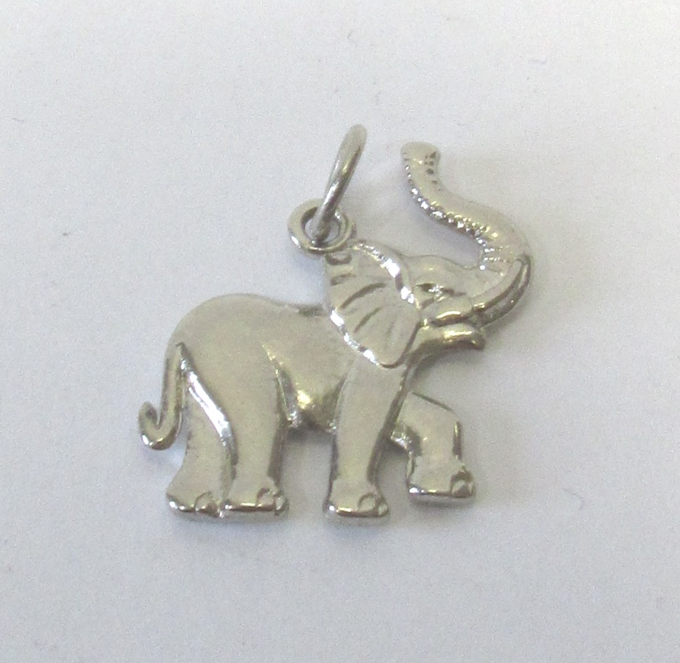 Pendente de elefante prateado sobre fundo branco