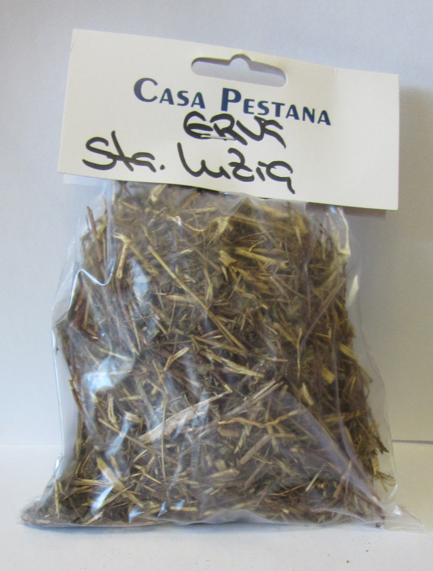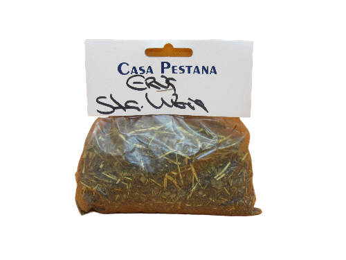 Pacote pequeno de ervas secas com rótulo Casa Pestana