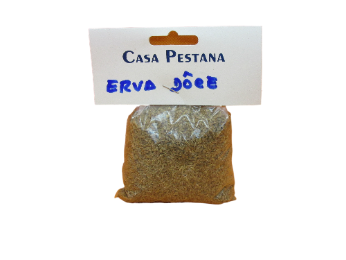 Pacote de erva doce da Casa Pestana com etiqueta branca e texto azul