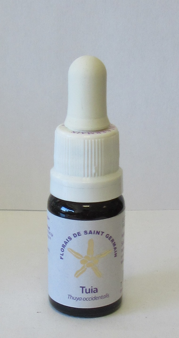 O floral Tuia traz a energia da consciência da pureza. Para as pessoas sem determinação e pureza, as coisas desandam na vida. O floral Tuia traz o propósito da melhora em aperfeiçoar-se cada vez mais. Geralmente são pessoas grosseiras também nas falas. Carregam uma culpa inconsciente do pecado. Na farmacopéia é usado para activar a circulação sanguínea, é um tónico das fraquezas em geral, fortalece a próstata dos idosos, combate a hipertrofia da próstata, combate a rouquidão, a seborréia, gota (ácido úrico), reumatismo blenorrágico, úlceras, feridas e fístulas anais e genitais, verrugas, condilomas, excrescências das mucosas, excrescências da pele, conserva a cor dos cabelos, combate as varizes e combate a psoríase.