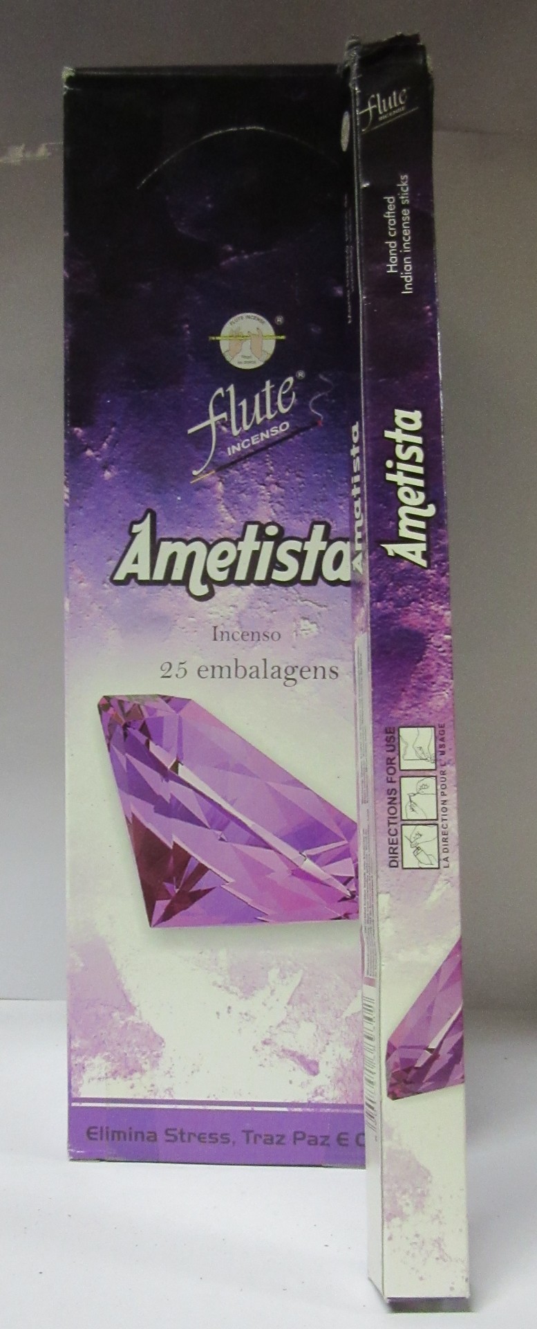 caixa e embalagem de incenso ametista cor roxa com imagem de pedra ametista