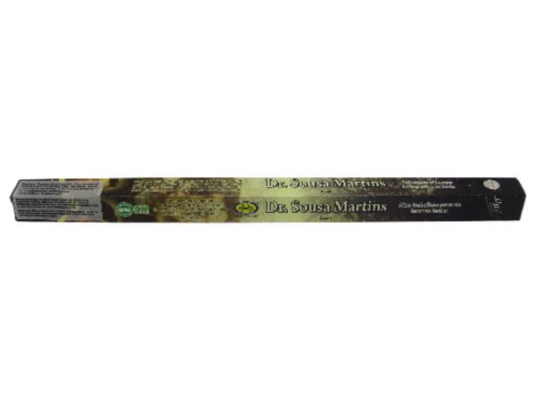 Caixa longa de cartão com texto 'Dr. Sousa Martins' e cores castanhas e verdes.