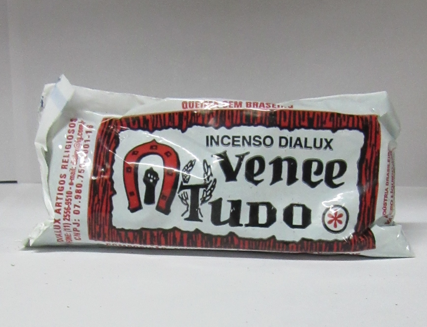 Pacote de incenso Dialux Vence Tudo com texto e símbolo gráfico