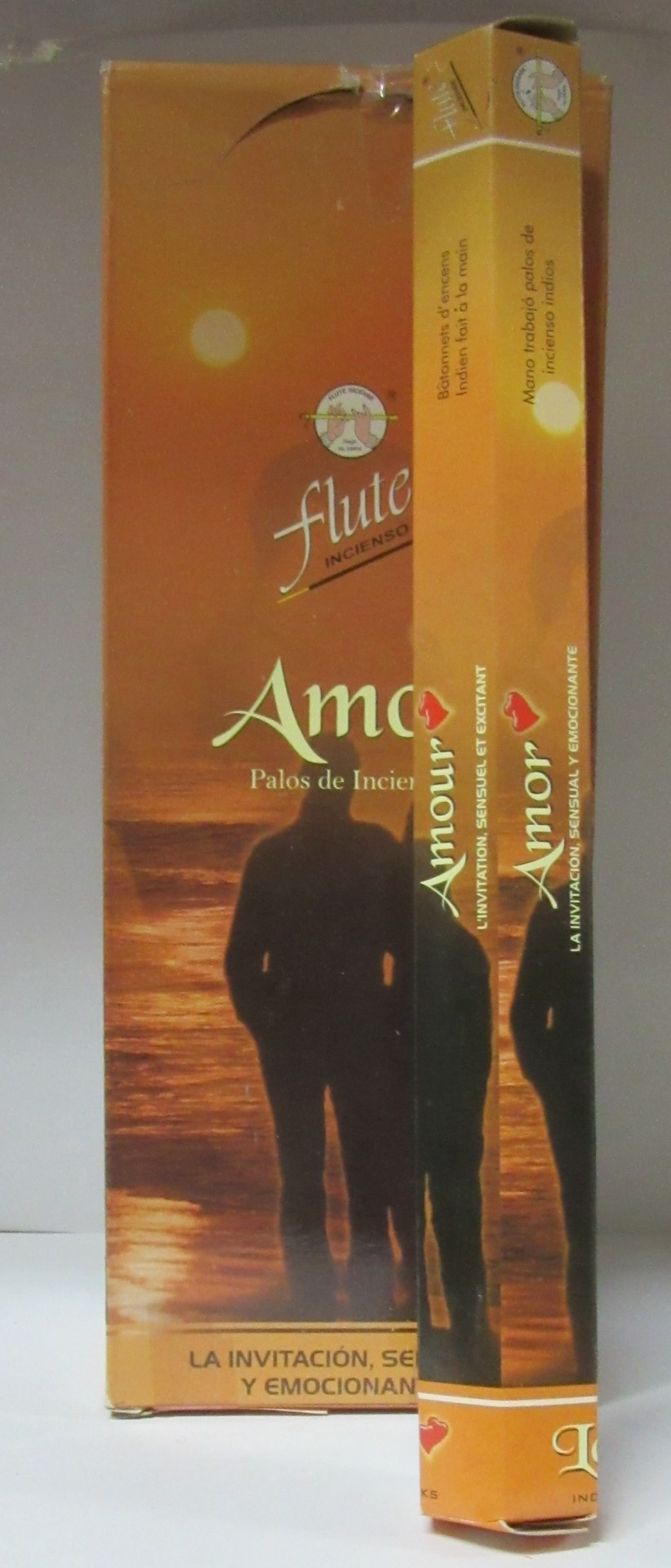 Caixa de incensos Flute Amour com imagem de pessoas na praia ao pôr do sol