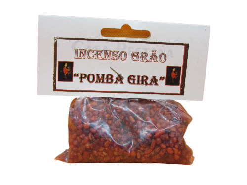 Pacote de incenso em grão com rótulo INCENSO GRÃO 'POMBA GIRA'