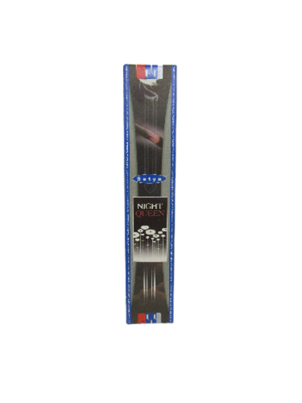 Embalagens de incenso Satya Night Queen com texto e ilustração de flores