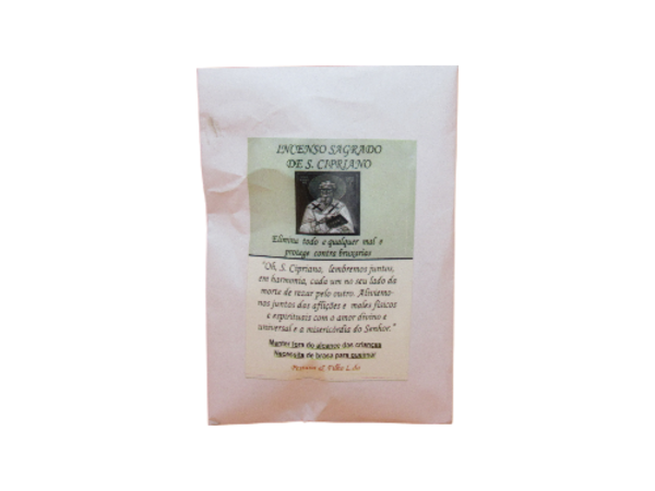 Pacote de incenso sagrado de São Cipriano com rótulo em português