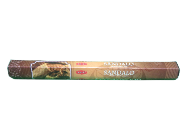 Varetas de incenso Sândalo em caixa retangular castanha com etiqueta amarela e texto SÂNDALO