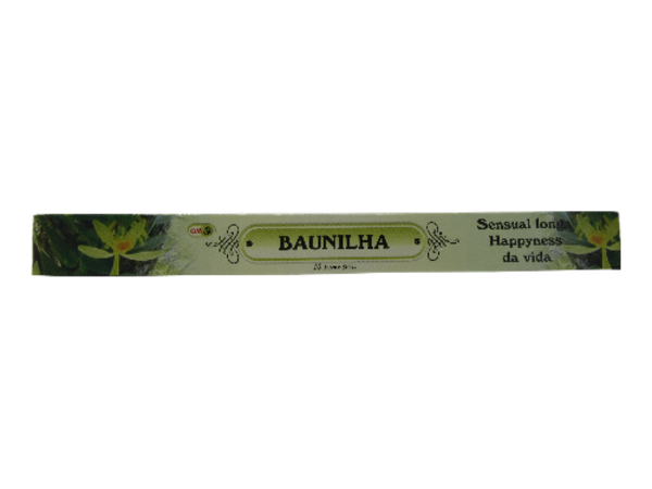 Embalagem de incenso de baunilha com flores amarelas e texto impresso