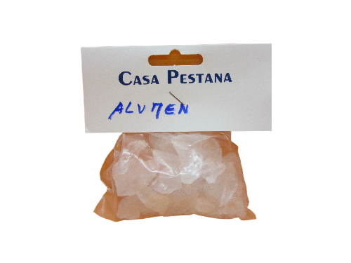 O alumen (também chamado pedra úme ou pedra alumbre) tem por principais características ser antisséptica e adstringente (capacidade de comprimir, provoca constrição dos tecidos e diminui as secreções), sendo um perfeito desodorizante natural e um cicatrizante para pele muito eficaz.Para ser usado, basta apenas molhar um bocado de alúmen em pedra e aplicá-la na pele.