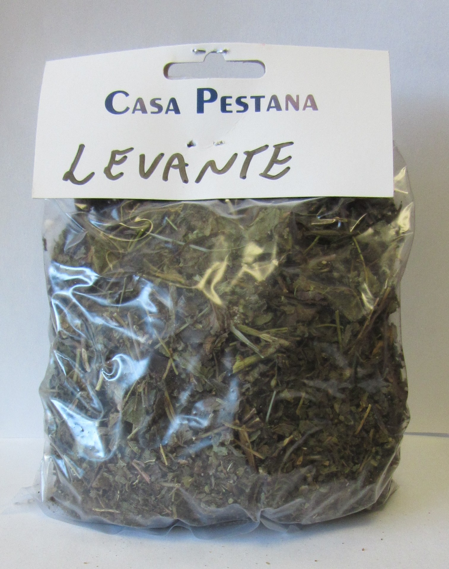Pacote de ervas secas com etiqueta branca da Casa Pestana Levante