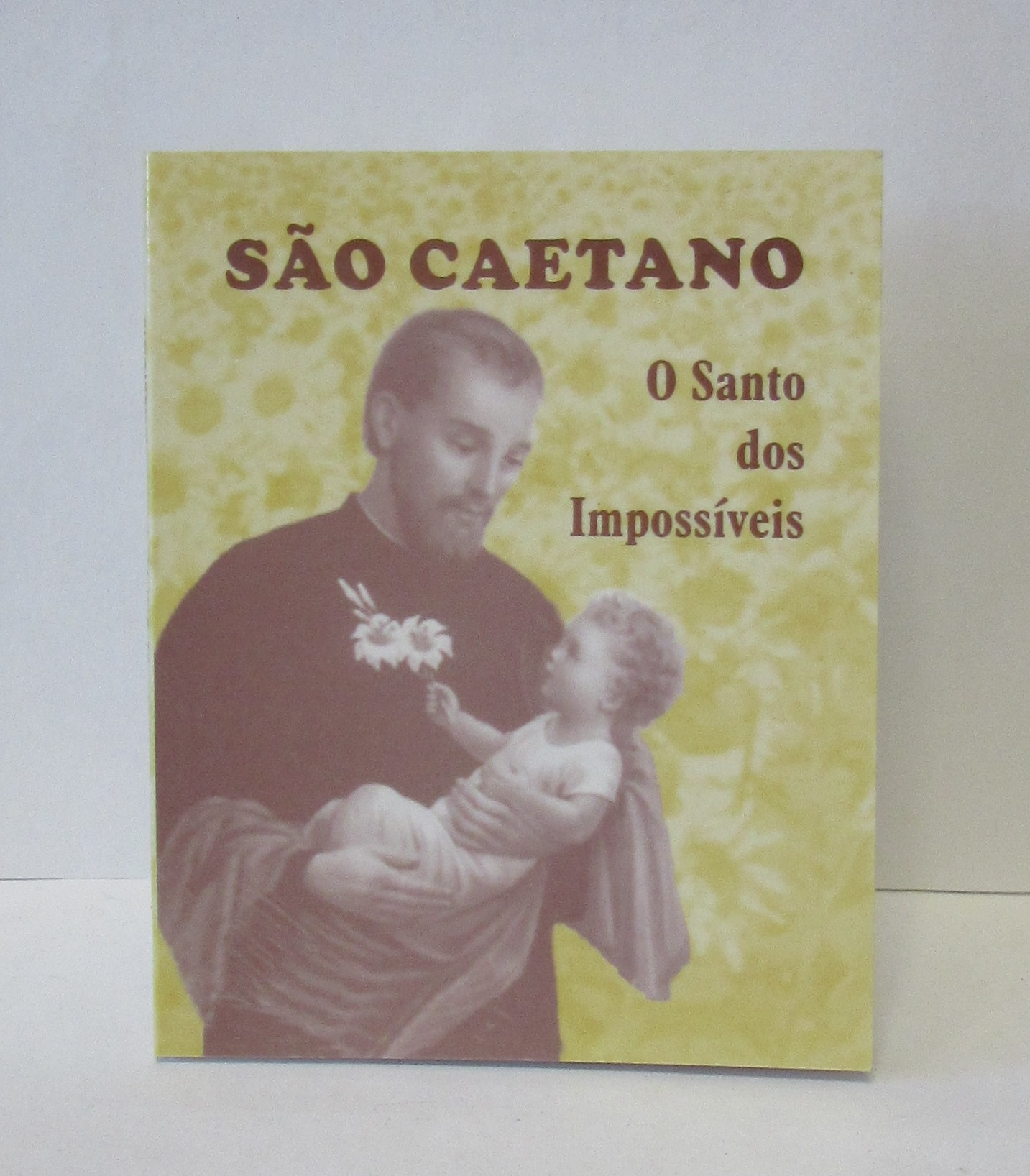 Caixa com imagem de São Caetano e texto religioso