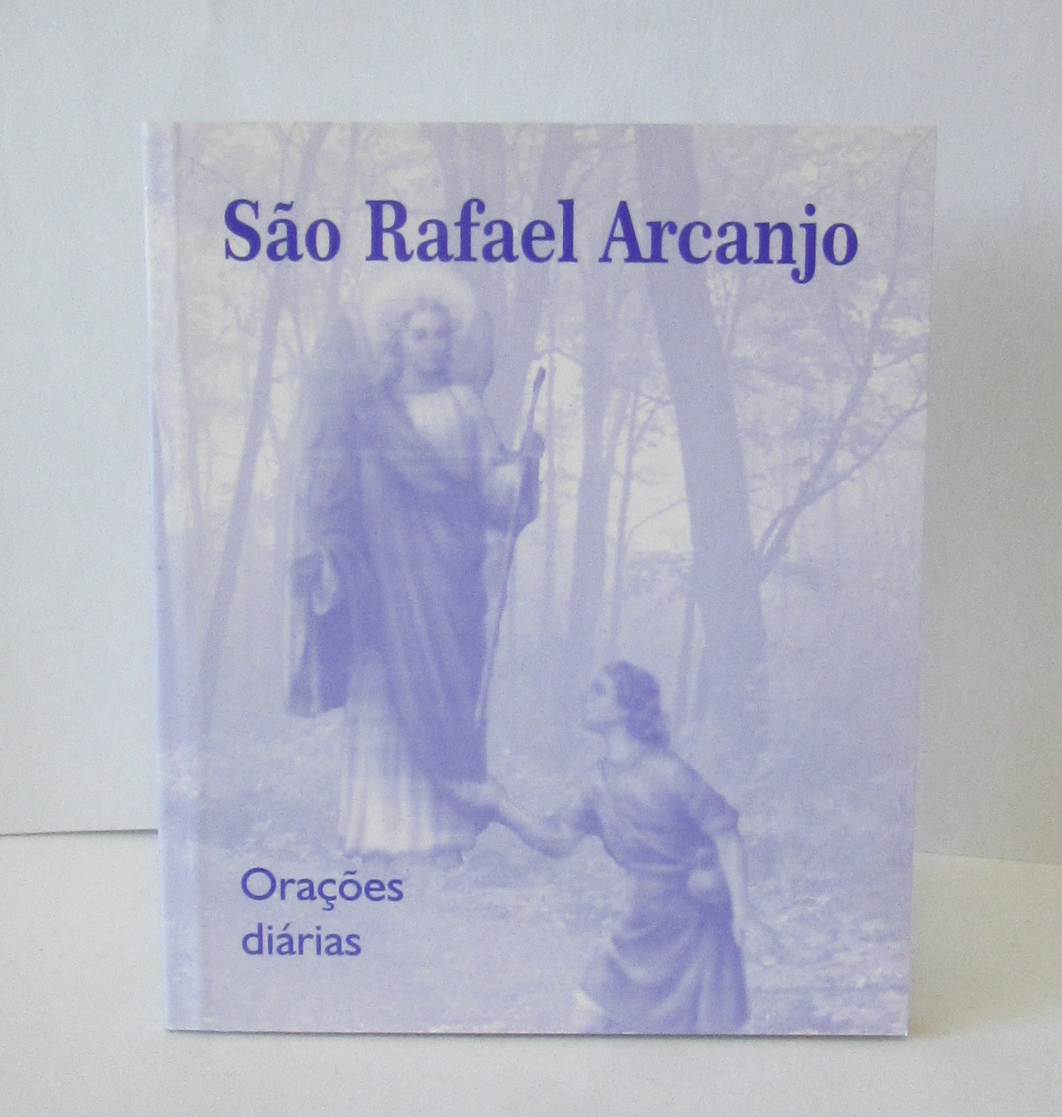 Capa de livro azul com imagem de anjo e texto São Rafael Arcanjo