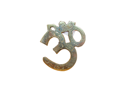 Símbolo Om em metal dourado com detalhes em relevo