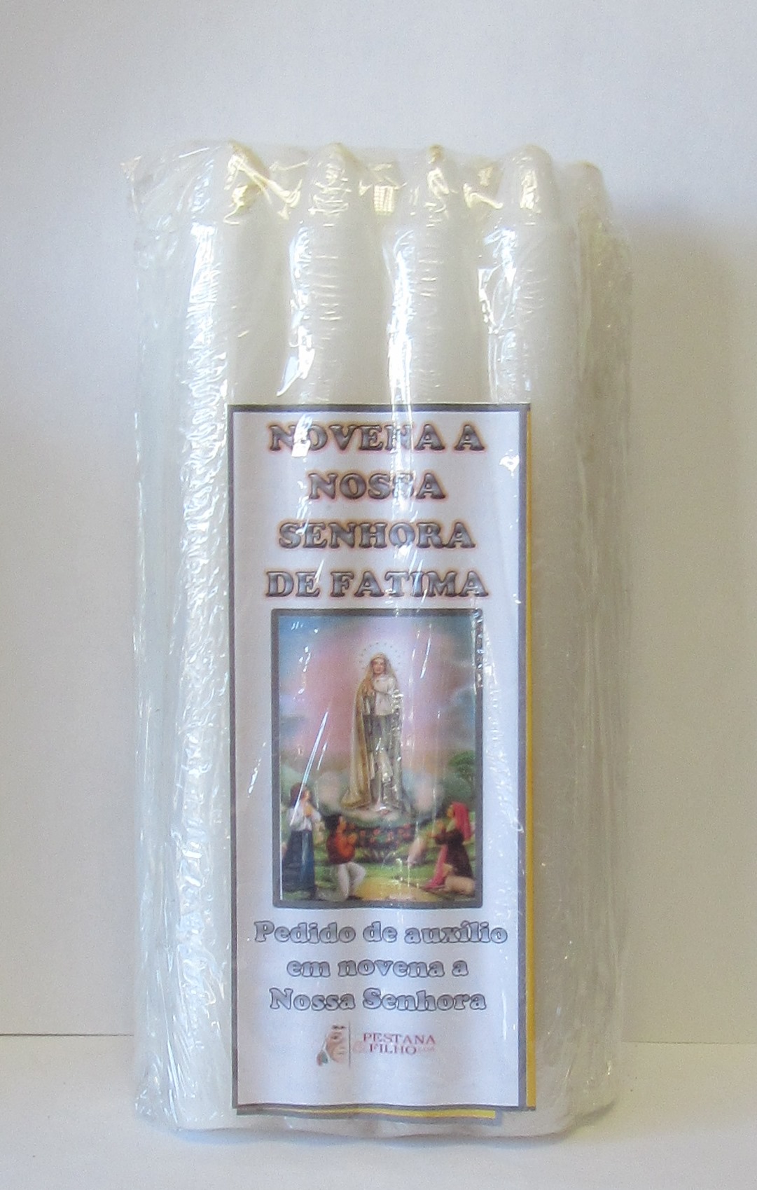 Cada novena é composta por 9 velas brancas (20cm x 20cm) e vem com instruções e oração especifica.