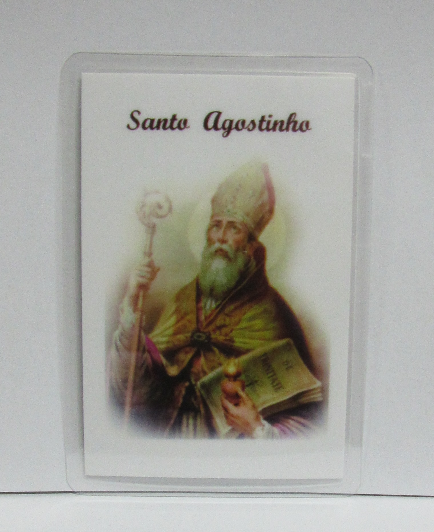 Esta pagela de Santo Agostinho é plastificada e contém uma oração.