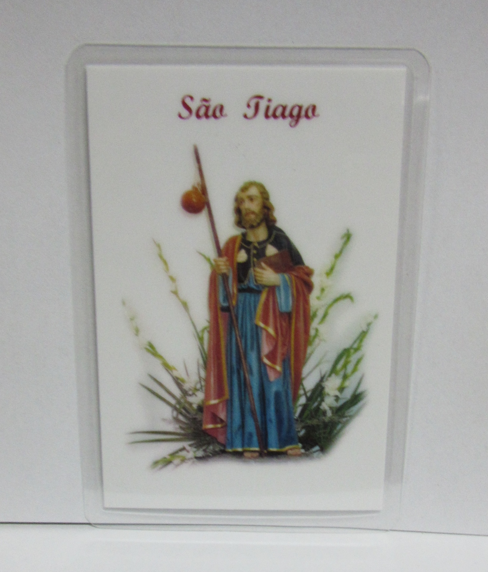 Estampa religiosa em plástico com São Tiago e texto São Tiago