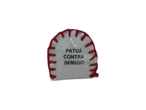 amuleto branco com bordas vermelhas e texto PATUÁ CONTRA INIMIGO