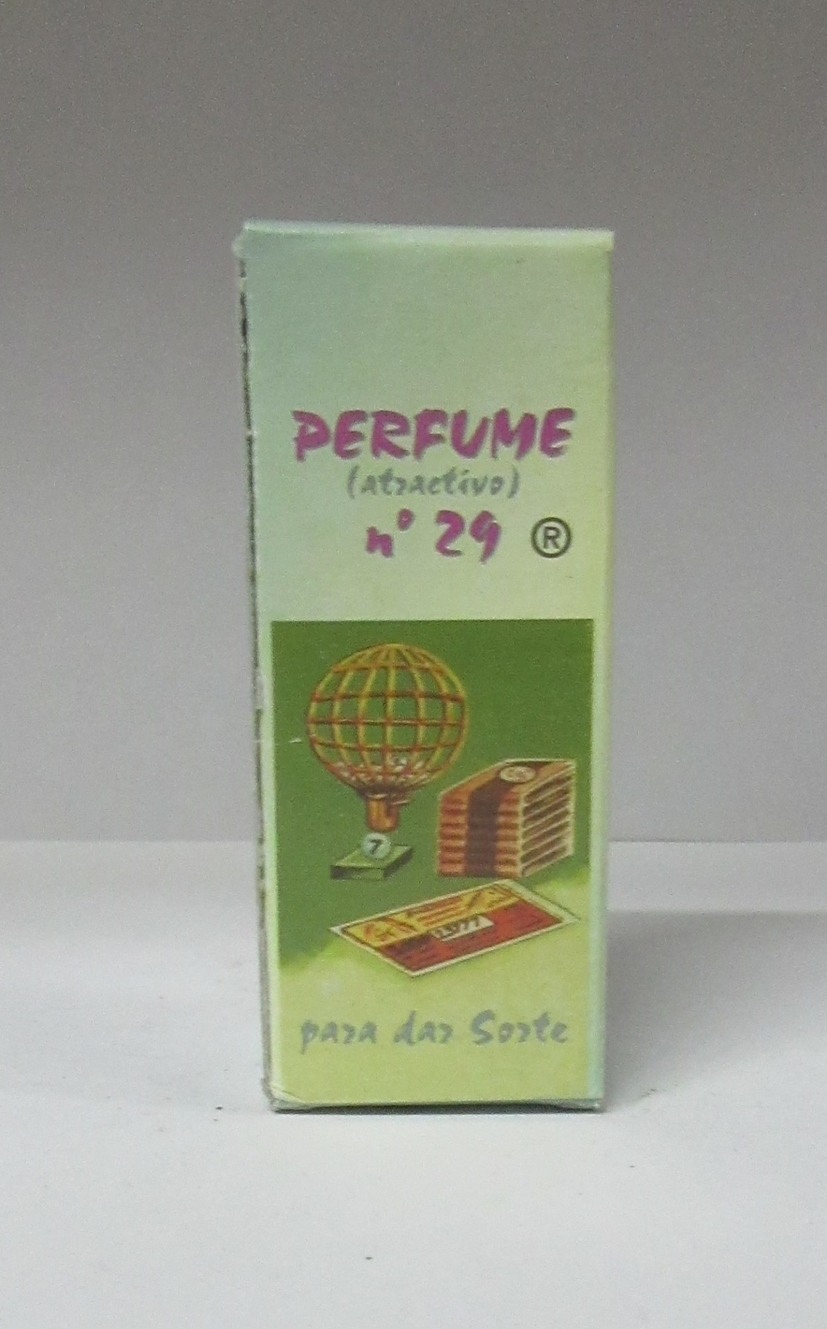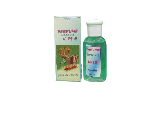 Frasco e embalagem de perfume Nº 29 para atrair sorte