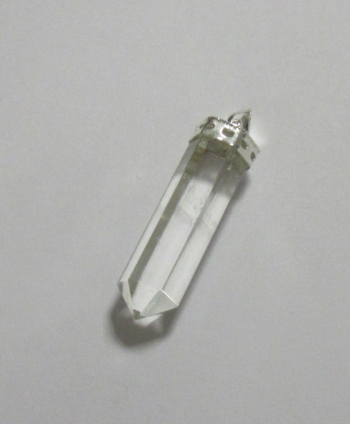 Pingente cristal transparente com ferragem prateada sobre fundo branco
