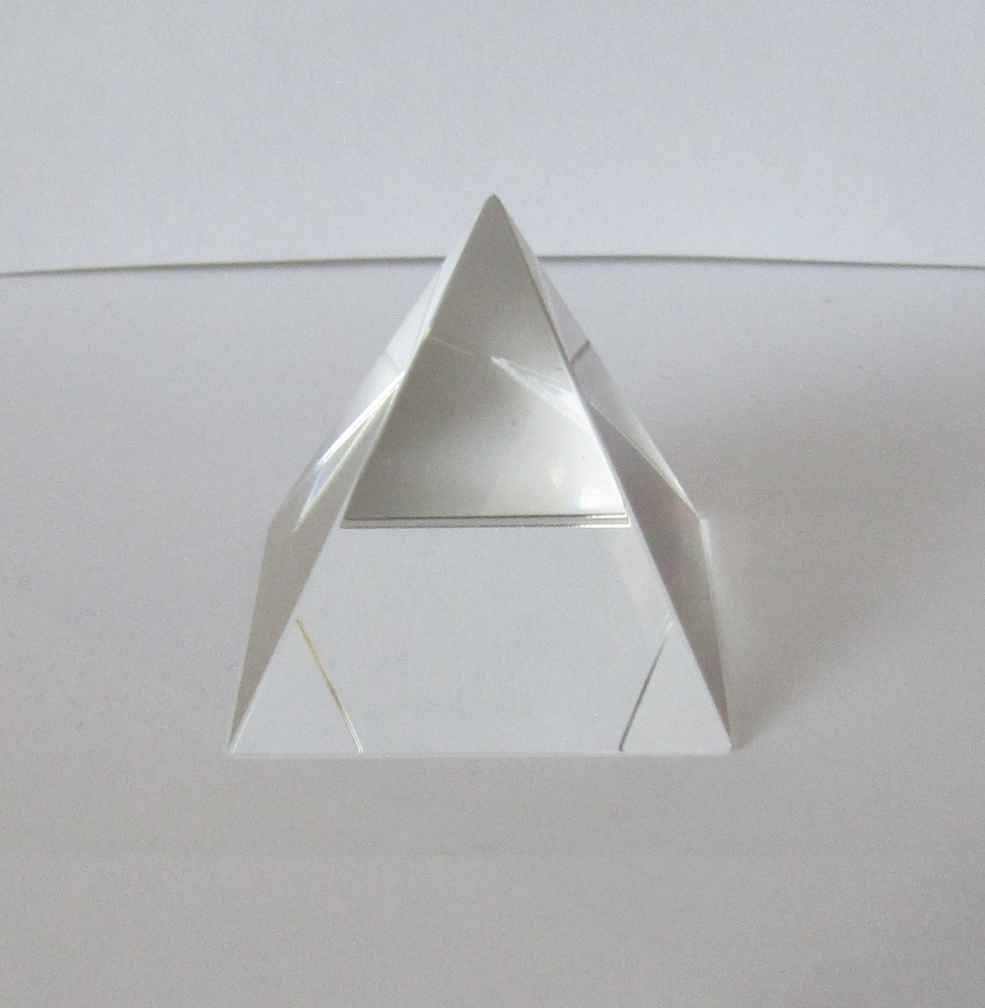 Prisma triangular transparente em vidro ou acrílico sobre superfície branca