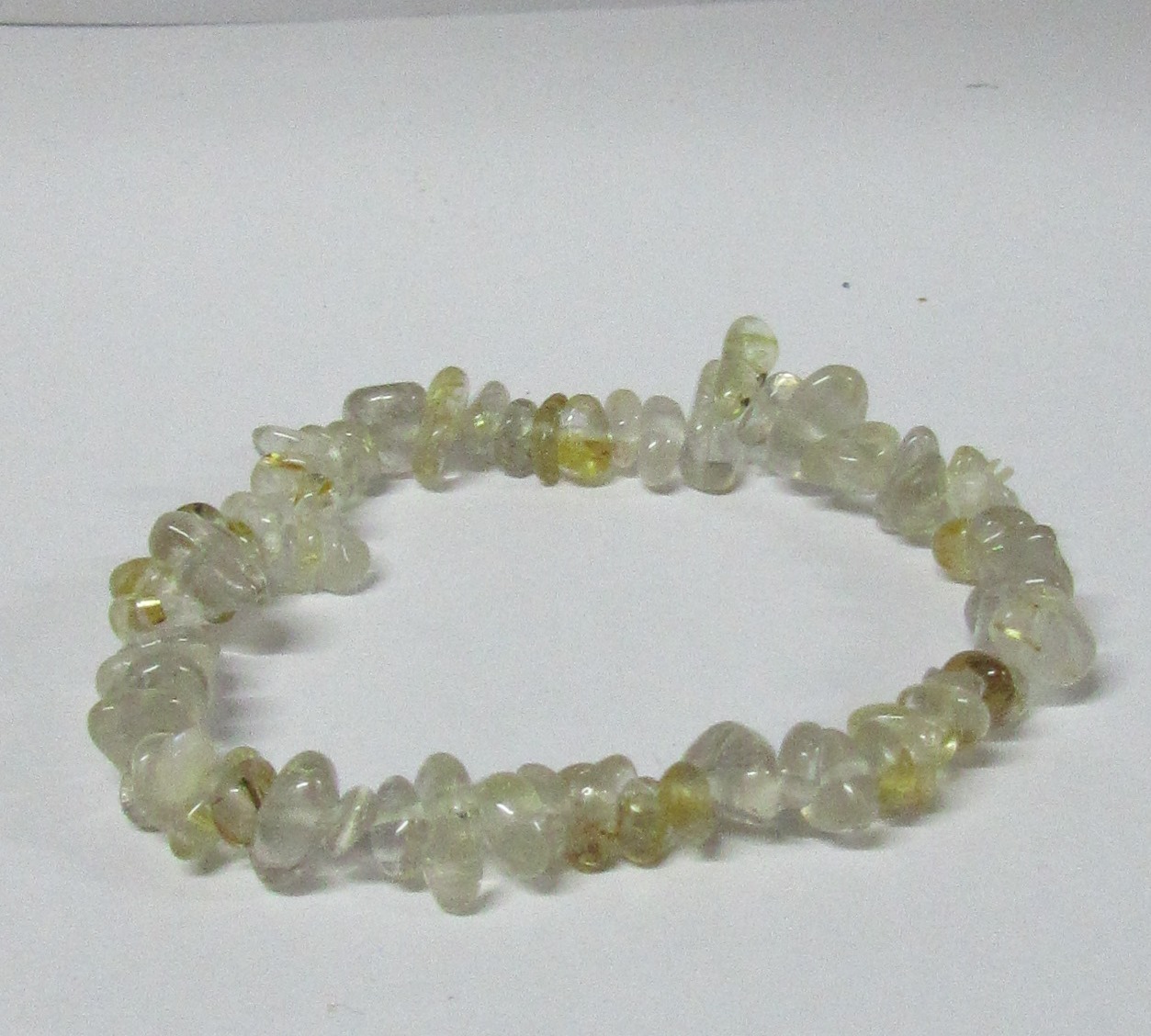 Pulseira de pedras naturais translúcidas amarelas e bege num fundo branco