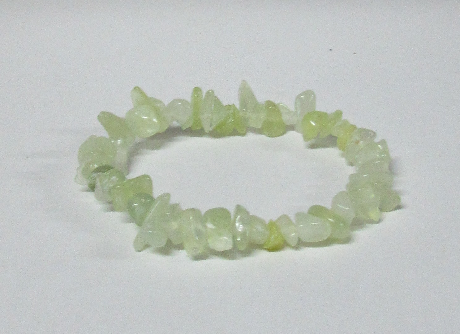 Pulseira elástica com pedras verdes claras sobre fundo branco