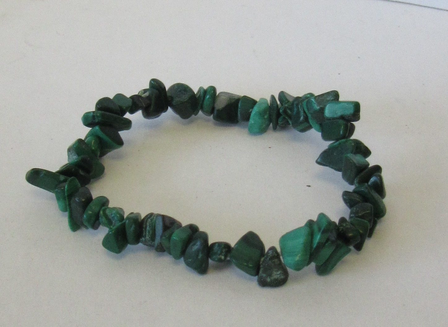 Pulseira de pedras verdes irregulares sobre superfície branca