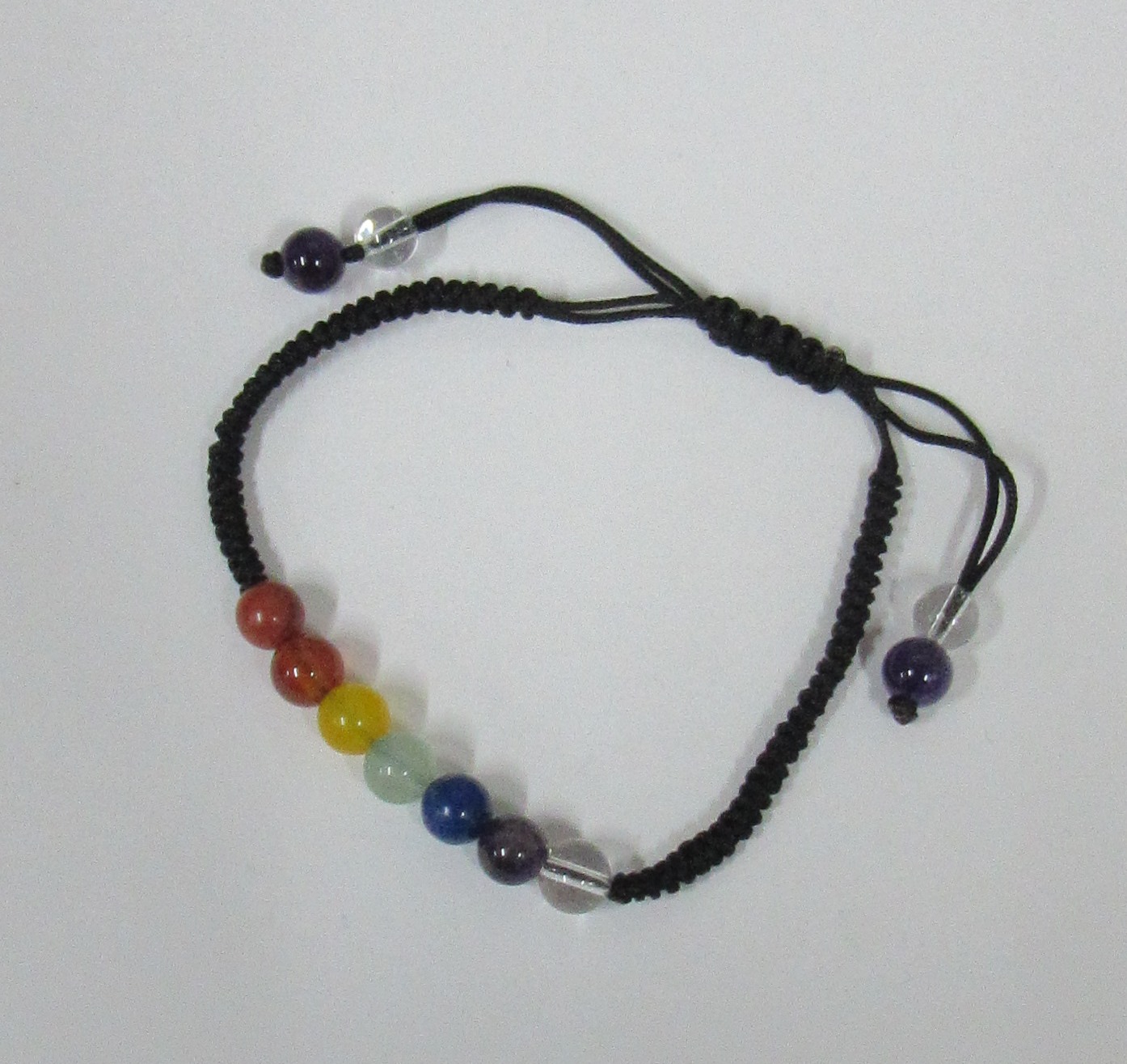Esta pulseira dos 7 chakras é composta por cristais dos 7 cakras em formato de esferas lisas e com um fio para ajustar ao pulso.