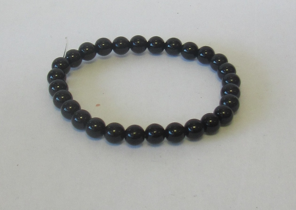 Pulseira de bolas pretas brilhantes sobre fundo branco.