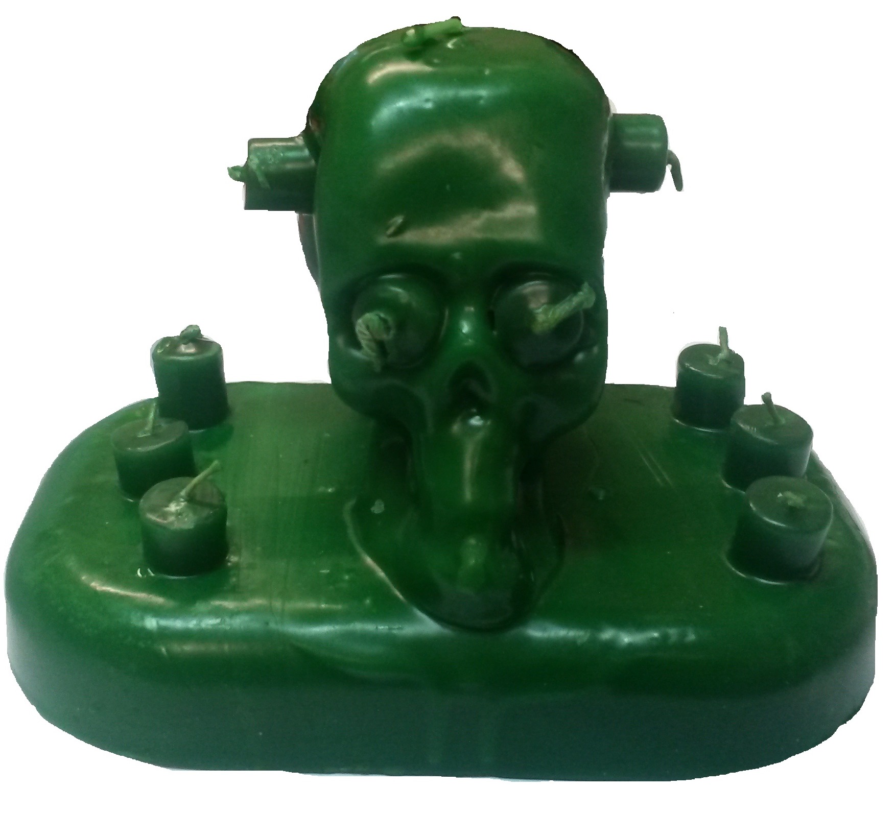 O ritual 11 mechas caveira verde é composto por uma vela figura de caveira de 11 mechas (com pó de descarga), 3 barras de defumador, as orações específicas e as instruções de utilização.