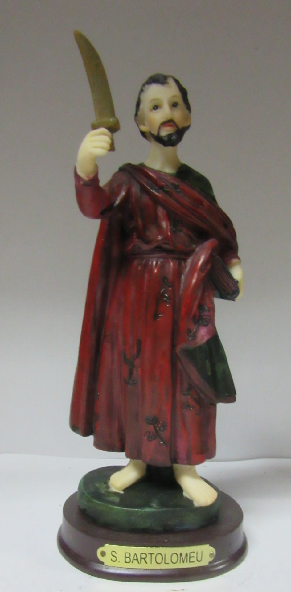 Estátua de S. Bartolomeu em resina com faca e livro