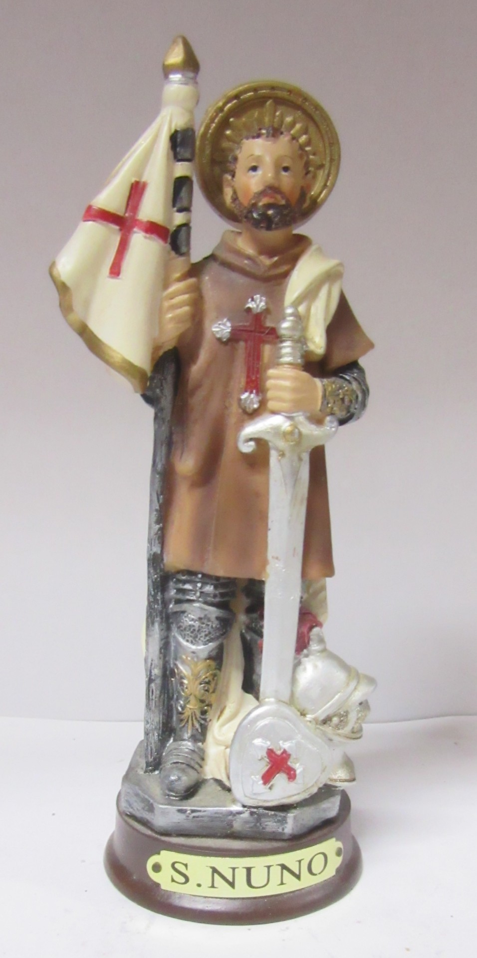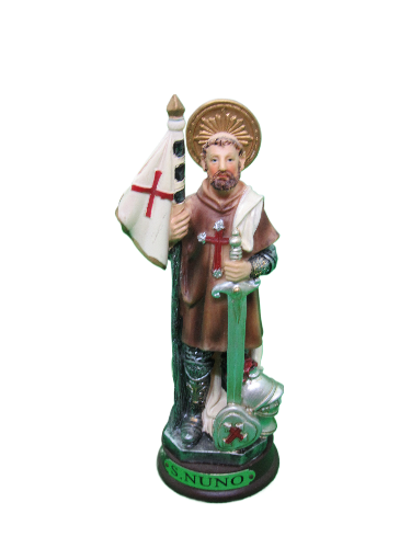 São Nuno Álvares Pereira foi um nobre, guerreiro e santo português do século XIV. É conhecido por sua bravura militar, serviço à coroa portuguesa e profunda devoção religiosa. É venerado como padroeiro de Portugal, dos militares e das famílias, sendo lembrado pela sua coragem, virtude e devoção tanto na vida militar quanto na espiritual.