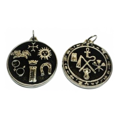 Este talismã em forma de medalhão tem uma face dupla apresentando os mais variados e poderosos símbolos. Será um dos mauletos mais completos qu existem.