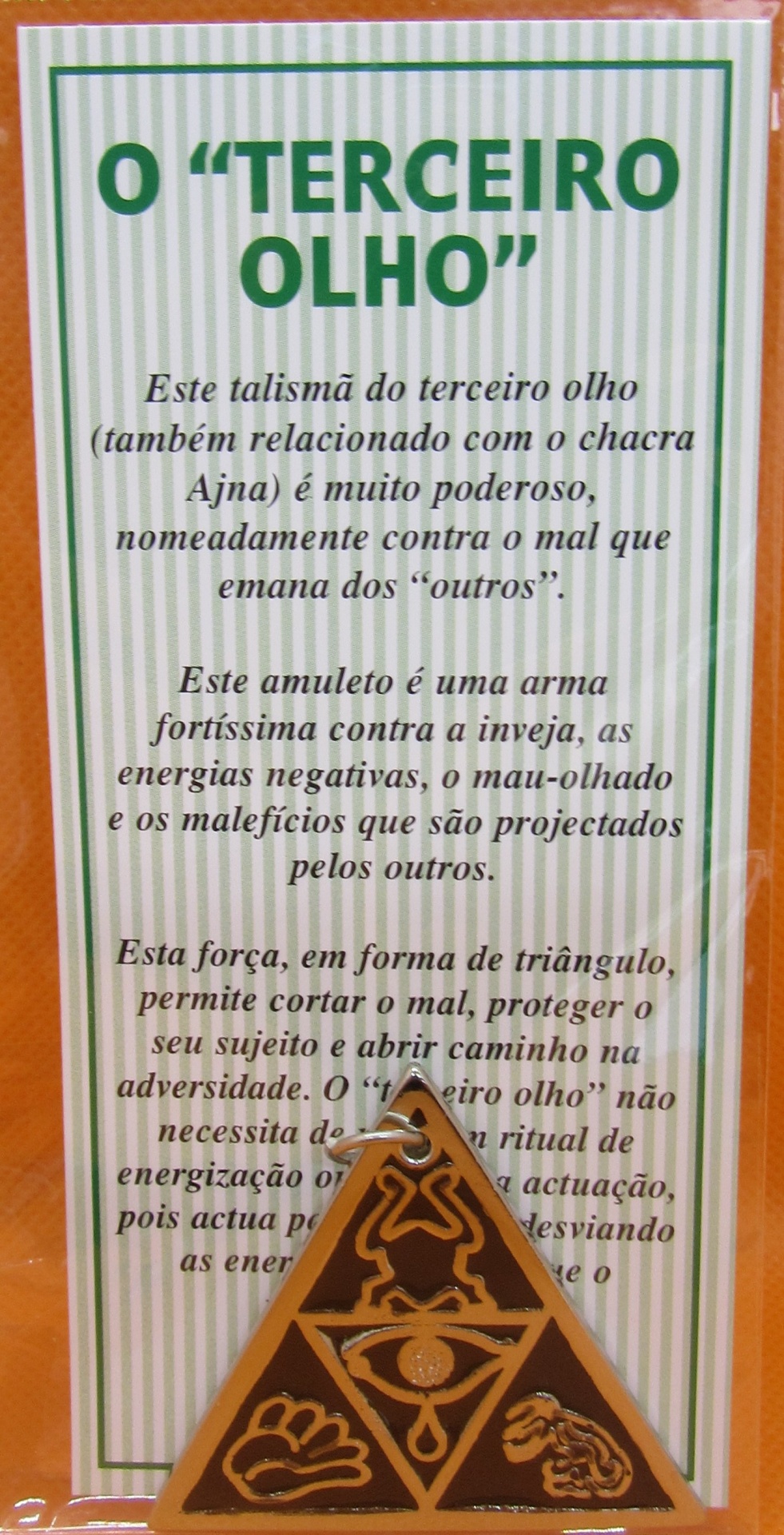 Este talismã do terceiro olho (também relacionado com o chacra Ajna) é muito poderoso nomeadamente contra o mal que emana dos "outros". Este amuleto é uma arma fortíssima contra a inveja, as energias negativas, o mau-olhado e os malefícios que são projectados pelos outros.