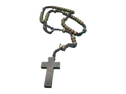 Colar de contas e cruz de madeira castanha