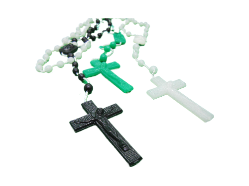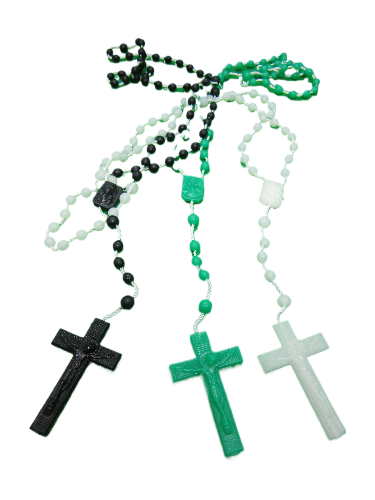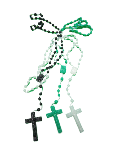 Três terços com cruzes em preto, verde e branco sobre fundo branco