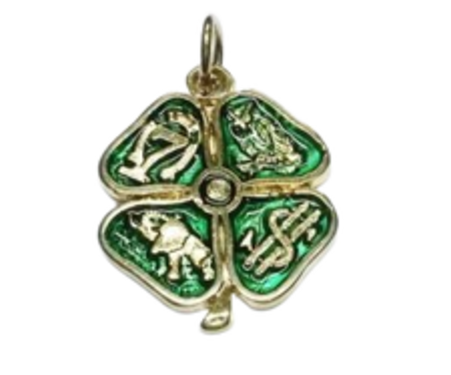 Pendente em forma de trevo dourado com esmalte verde e figuras em relevo