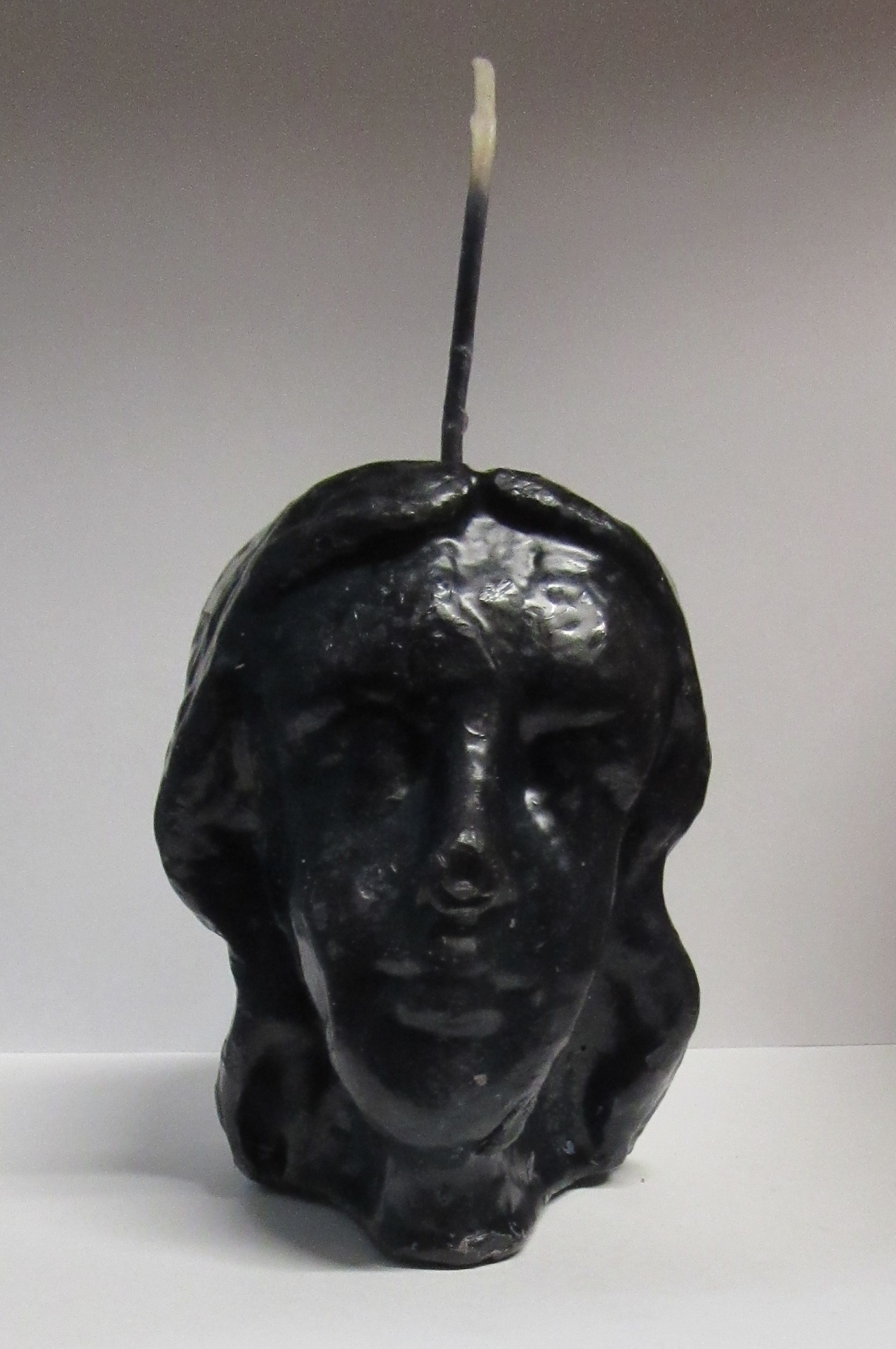 Vela preta em forma de cabeça feminina com pavio