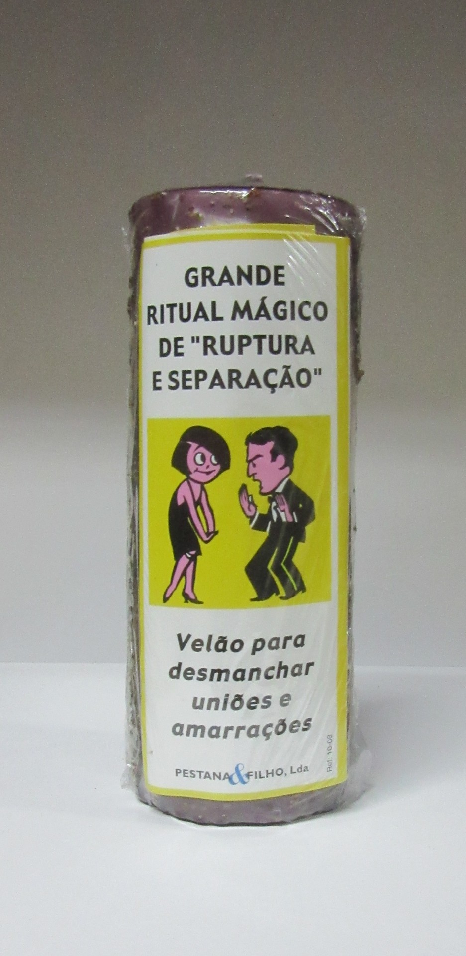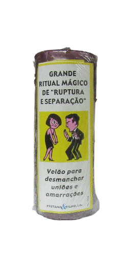 Vela roxa com rótulo de ritual mágico para ruptura e separação