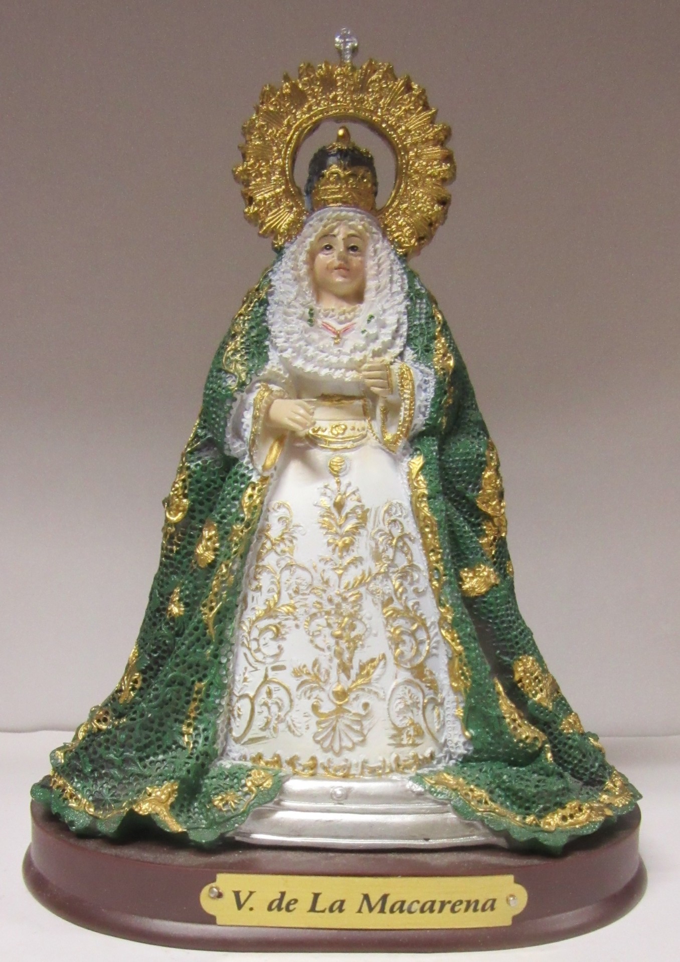 Nossa Senhora da Esperança Macarena é considerada a padroeira dos matadores de touros e dos bombeiros. A imagem retrata Maria, mãe de Jesus, em uma pose de dor e sofrimento, representando a aflição de uma mãe diante da crucificação de seu filho. A Virgem de la Macarena é conhecida pela sua beleza e expressão facial emotiva.
