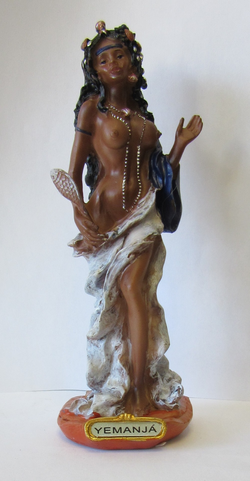 Estátua decorativa de Yemanjá com base e placa